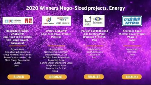 △2020年10月,孟加拉帕亞拉燃煤電站項目榮獲國際特大型項目管理銀獎,該獎項是2020年度IPMA能源行業的最高獎。