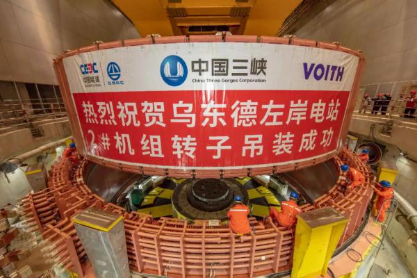 烏東德水電站是實(shí)施“西電東送”的國(guó)家重大工程,電站共安裝12臺(tái)單機(jī)容量85萬(wàn)千瓦水輪發(fā)電機(jī)組,總裝機(jī)容量1020萬(wàn)千瓦,其中8臺(tái)機(jī)組已于2020年投產(chǎn)發(fā)電。此次吊裝的2號(hào)機(jī)組轉(zhuǎn)子直徑17.49米,高度4.07米,由中心體、扇形體支架、磁軛及磁極組成,是烏東德水輪發(fā)電機(jī)組最重、最核心的部件之一,也是目前世界上在建水電站中最大的機(jī)組部件之一。