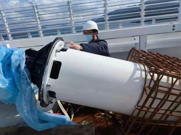 項(xiàng)目人員對(duì)鋼箱梁倉(cāng)內(nèi)進(jìn)行清洗
