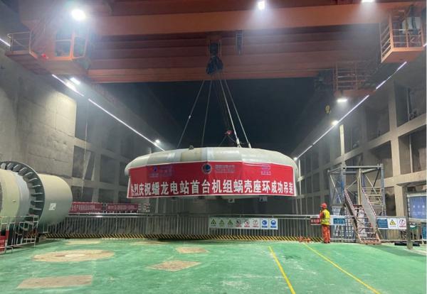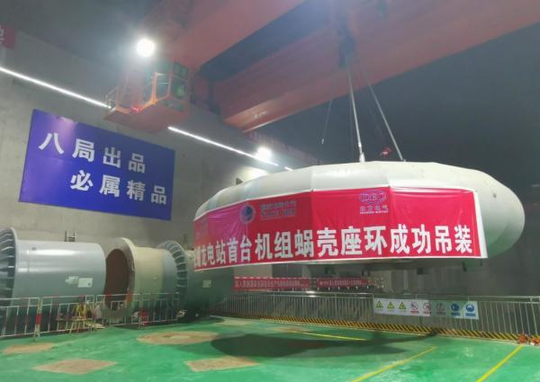 中國(guó)基建報(bào)訊(撰文|劉治溶 攝影|劉治溶、劉婷婷)5月12日上午9點(diǎn)41分,由中國(guó)水電八局參建的重慶蟠龍抽水蓄能電站首臺(tái)機(jī)組蝸殼座環(huán)順利完成吊裝,迎來(lái)了電站機(jī)組設(shè)備安裝的重要里程碑,標(biāo)志著重慶蟠龍抽水蓄能電站正式進(jìn)入機(jī)組埋件安裝高峰期。