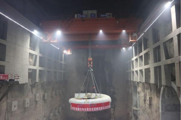 上午9點(diǎn)03分,現(xiàn)場(chǎng)總指揮發(fā)出“起吊”指令,首臺(tái)機(jī)組蝸殼座環(huán)在安裝間緩緩拔地而起,在地下廠房懸空穩(wěn)穩(wěn)前行67米之后,到達(dá)1號(hào)機(jī)組段上方。