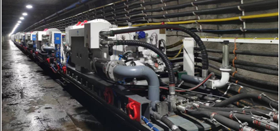 “煤礦高效能大流量遠(yuǎn)距離智能配送水基動(dòng)力系統(tǒng)成套裝備”項(xiàng)目開(kāi)發(fā)了多泵站并聯(lián)集中式智能變頻控制系統(tǒng)和大流量蓄能穩(wěn)壓裝備及回液中繼系統(tǒng);發(fā)明了井下大流量乳化液泵沖擊脈沖預(yù)測(cè)方法、乳化液智能配比及矯正系統(tǒng);提出了用液實(shí)時(shí)輕量算法+用液超前預(yù)測(cè)模型的符合控制方案,實(shí)現(xiàn)了3500m以上的超遠(yuǎn)距離工作面穩(wěn)壓穩(wěn)流智能配送。