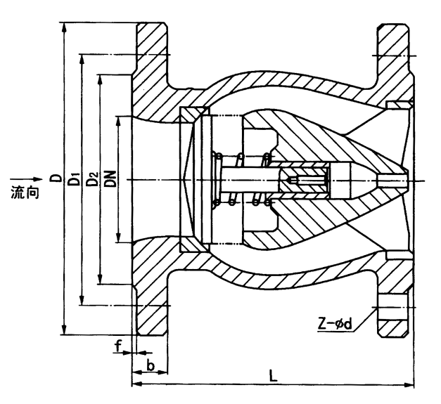 該產品是本公司研制的新產品。本閥內部流道采用流線型設計并設有導流體。主要用于水泵出口或其它防止液體倒流的地方,可有效地防止液體倒流時產生的水錘沖擊水泵倒轉和保衛管路的安全和嗓音,具有靜音關閉的特點,從而延長了使用壽命,是止回閥的更新換代產品。